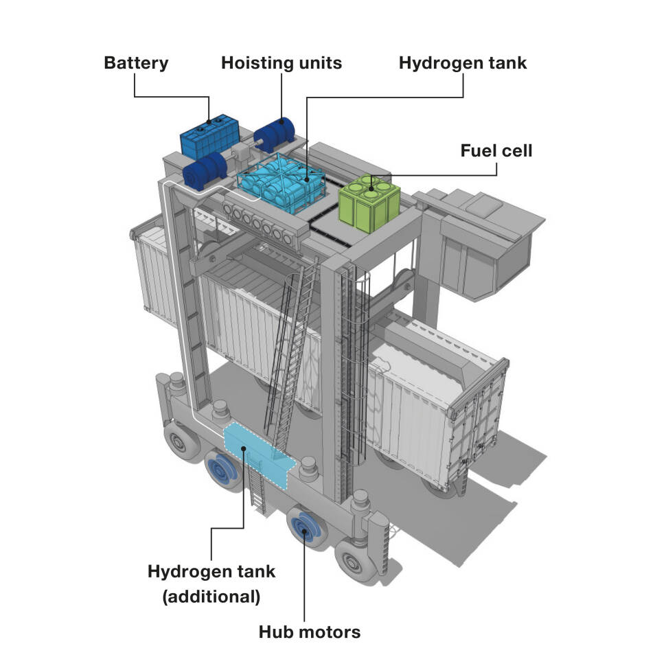 From the outside, the new straddle carrier hardly looks any different. However, the view from above reveals the hydrogen fuel cell.