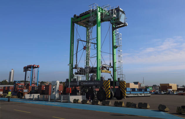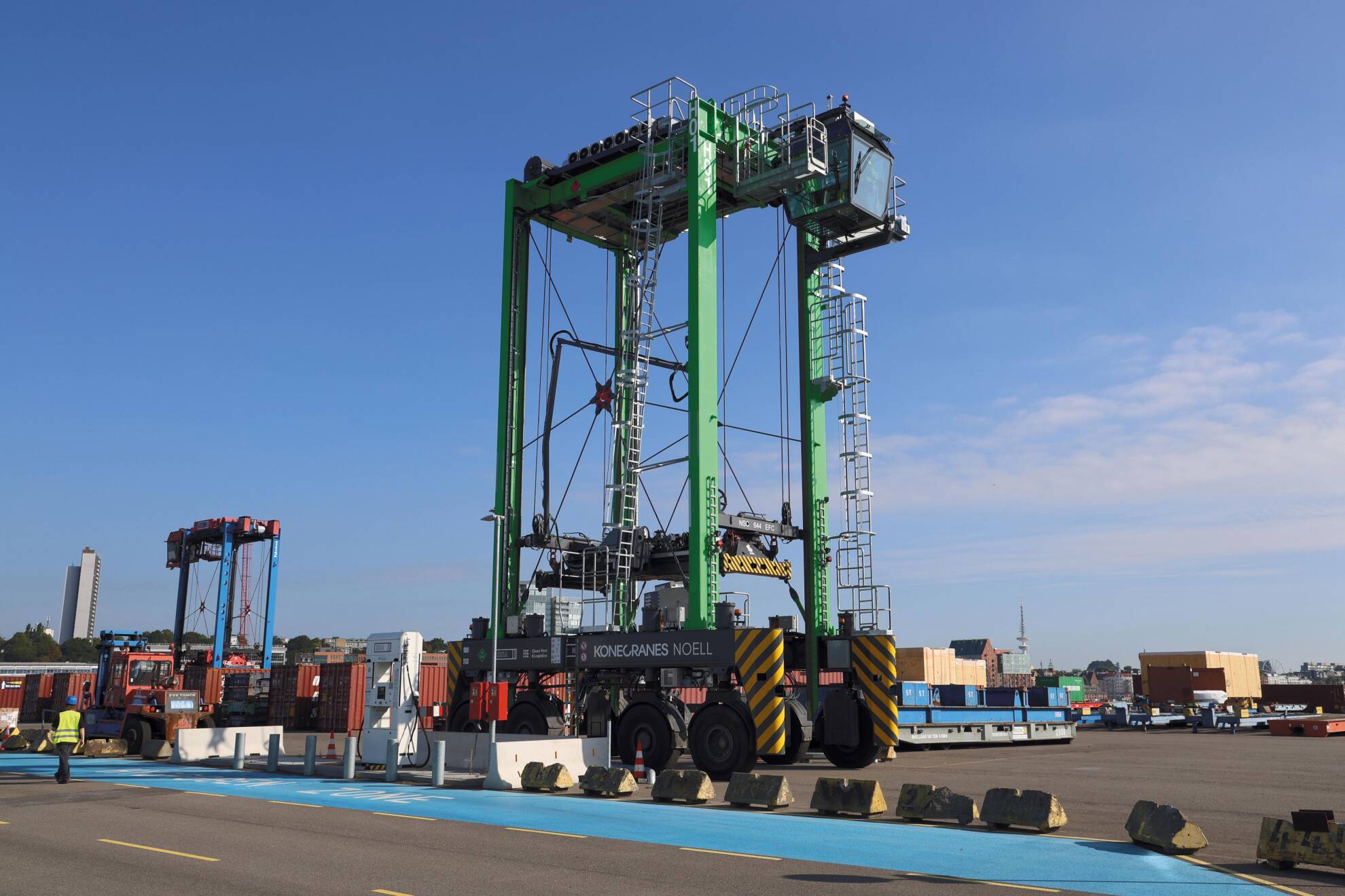 At its Hamburg Container Terminal Tollerort (CTT), straddle carriers transport steel boxes from the container gantry cranes to the warehouse and back, load them onto trucks or take them to the train station. Since autumn 2025, one of these long-legged carriers is running on emission-free hydrogen fuel cell technology. The Konecranes model’s first real-world tests show that the system responds quickly and the handling operations are capable of delivering the same performance as comparable diesel hybrid versions.