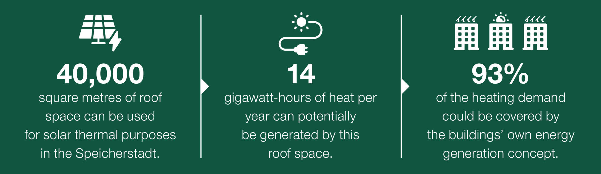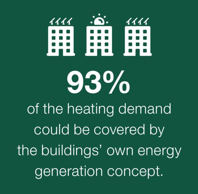 At the heart of the energy generation concept is an intelligent combination of solar thermal energy, ambient heat and solar PV systems. Heat pumps extract the energy, while storage systems store it for the heating demand period. Essential here is a building management system with a sophisticated concept for managing all components.