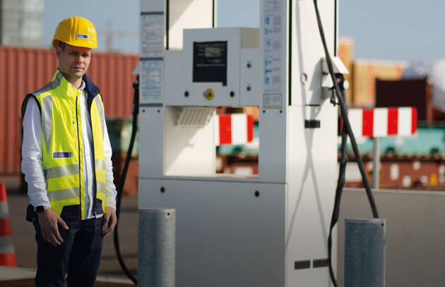 A standout feature of the vehicle is its modular drive system, which can be flexibly converted to run on diesel, electricity or hydrogen by making just a few adjustments. The straddle carrier refuels at the hydrogen filling station at CTT. The process is similar to the conventional methods, generating operational synergies and making integration into everyday workflows seamless.